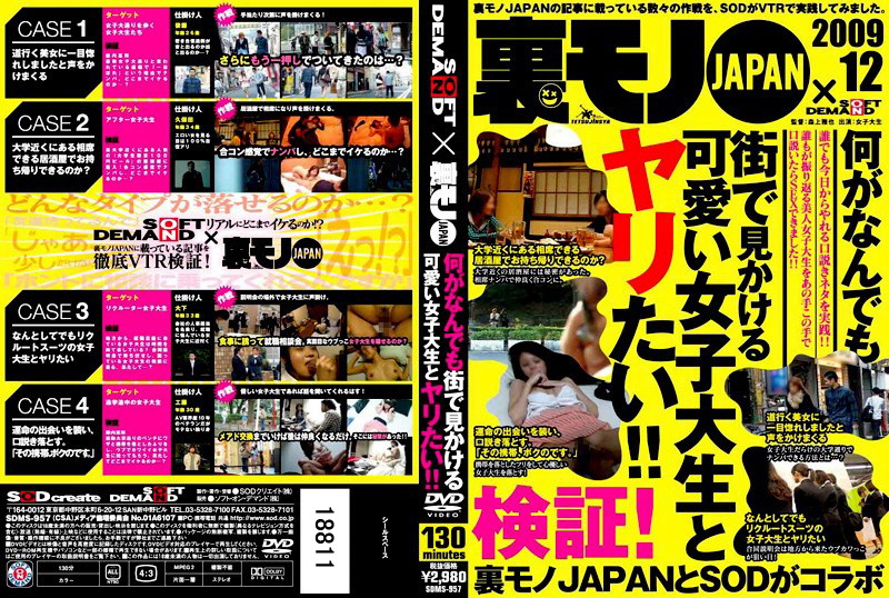 巷で噂の伝説を次々と解明し記事にする超おもしろ雑誌『裏モノJAPAN』。今回、雑誌社とSODとのタイアップによる検証DVDが誕生!エロネタを元にSODがリアルにヤレるのかを実践してきました。ナンパなんて無理・・・、女子大生となんて出会いが無い、容姿に自信がない、そんなあなたにお届けする渾身の作品です。女心を鷲掴みにし、女を落とす方法とは・・・?超必見です!