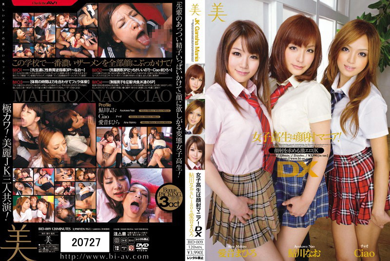 キレイで可愛いとっておきのJKが、たっぷりと顔射される顔射マニアシリーズのデラックス版!今作は鮎川なお、愛音まひろ、Ciaoの3人が激しく顔に欲しがります!先生2人を逆指導3P!先輩1人を取り合うハーレム3Pに、ブルマ姿3人がかりでの連続フェラ抜きや、制服のままでの6Pなど全編で激しく美顔を精子で汚します!